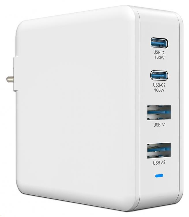 Rýchlonabíjacia, sieťová USB stanica až pre 4 USB zariadenia (2x USB-C, 2x USB-A) s celkovým výkonom 100W s podporou technológií QC4+ a PD3.0. Elektronika obsahuje inteligentný čip na identifikáciu zariadenia a optimalizáciu nabíjacieho prúdu a napätia.