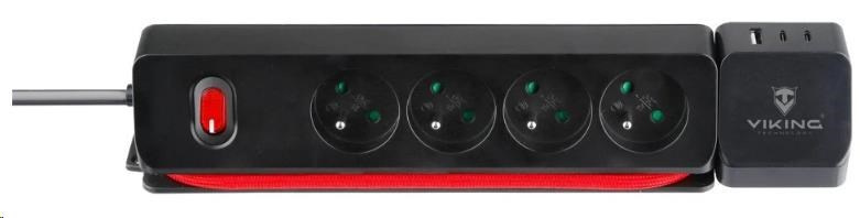 Viking síťová prodlužovací zásuvka R43S, 4x AC 230V, 1x USB-A, 2x USB-C, délka 1,4 m
