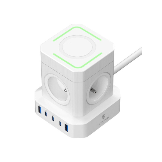 Viking ACT45W kombinuje päť výkonných USB portov (3× USB-C a 2x USB-A), štyri AC zásuvky a 2m predlžovací kábel v jednom kompaktnom zariadení, ktoré umožňuje súčasné napájanie až 10 zariadení.
