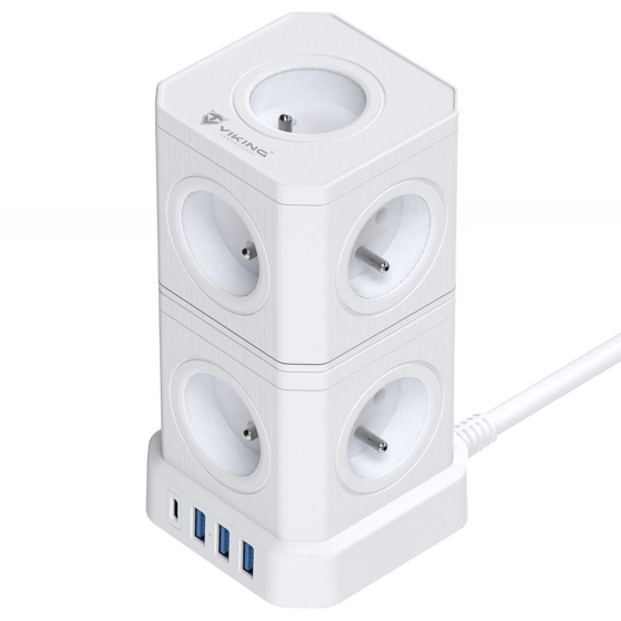 Predstavujeme Viking ACT94 - revolučnú elektrickú zásuvku, ktorá rozširuje štandardnú zásuvku o ďalších 9 x AC 230V, 3 x USB-A a 1x USB-C výstupy.