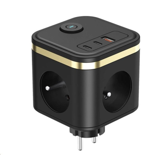 Síťový adaptér VIKING Y33 kombinuje 3 AC výstupy a 3 USB porty, čo umožňuje nabíjať až 6 zariadení súčasne. Vďaka kompaktnému designu a tlačidlu ON/OFF je používanie jednoduché a prehľadné.