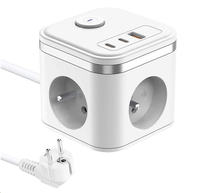 Síťový adaptér VIKING YC33 umožňuje pohodlné nabíjanie až 6 zariadení súčasne vďaka 3 AC výstupom a 3 USB portom. S praktickým tlačidlom ON/OFF, kompaktným dizajnom a 1,4 m dlhým káblom je ideálny pre domácnosť aj kanceláriu.
