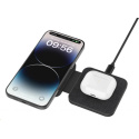 Nabíjačka ponúka dva bezdrôtové výstupy, ktoré umožňujú nabíjanie dvoch zariadení súčasne, čo je ideálne pre mobilné telefóny, hodinky a slúchadlá. Výstupný výkon pre mobilné zariadenia dosahuje až 15W, zatiaľ čo pre hodinky a slúchadlá poskytuje výkon až 2,5W. Súčasťou balenia je tiež USB-C kábel dlhý 1 m, ktorý zabezpečuje kompletné vybavenie pre rýchle a efektívne nabíjanie.