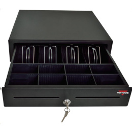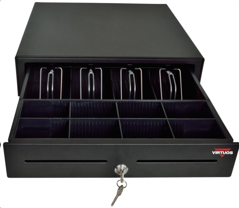 Virtuos pokladní zásuvka S-410C - s kabelem, pořadač 4/8, 9-24V, černá