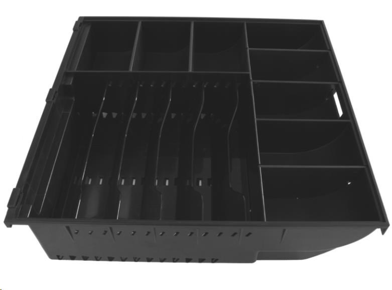 Vyberateľný priečinok na bankovky (nastaviteľný) a mince
