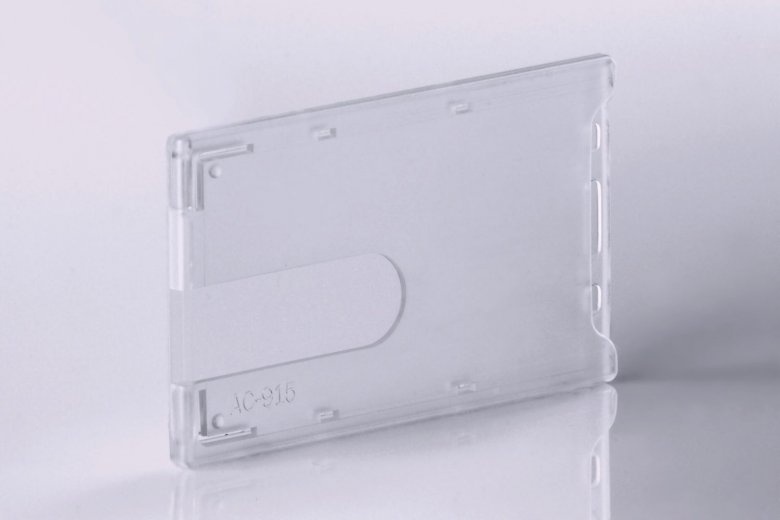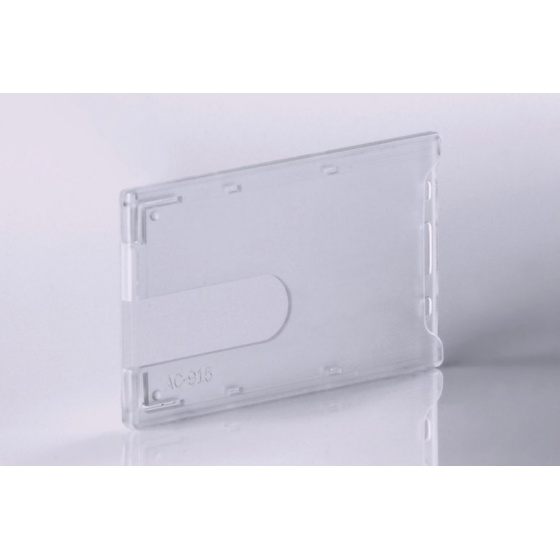 Pevná plastová visačka na magnetické karty 54 × 86 mm - vertikálna, vyrobená z priehľadného polomatného plastu. Dá sa zavesiť na klip alebo retiazku...