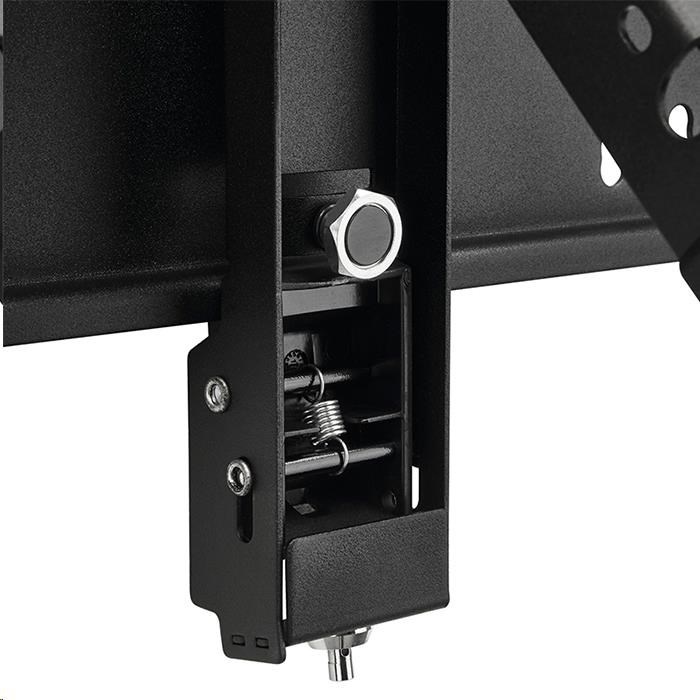 • Integrovaný zámok zabraňujúci neoprávnenej manipulácii, stačí ho zatlačiť a držiak sa uzamkne. Nie je potrebné spúšťať žiadne uzamykacie lišty za displejom