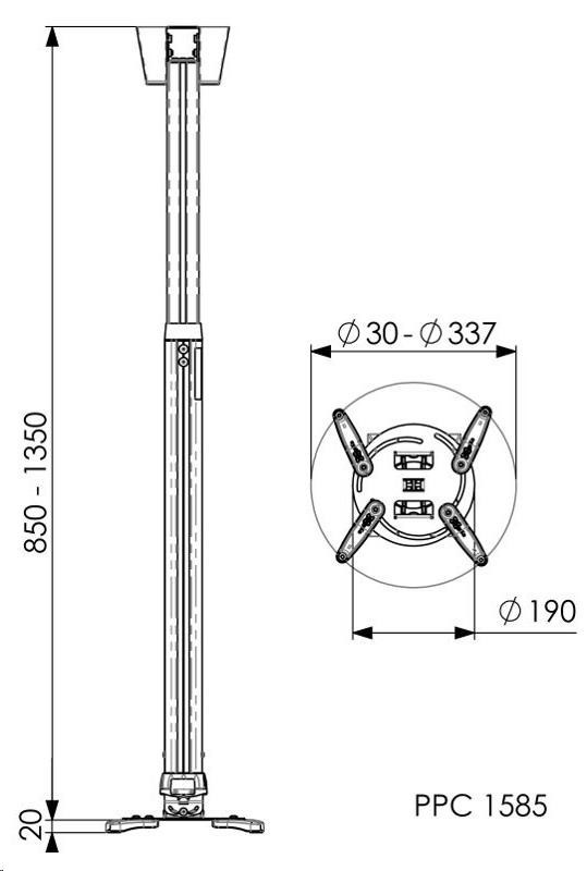 PPC 1585 Profesionálny Držiak teleskopického stropného projektora 85-135 cm Teleskopický držiak stro