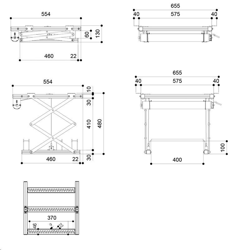 Rozmery uzavretého výťahu 575 x 130 x 554 mm (Š x V x H)