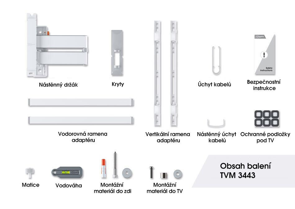 Chcete si optimálne vychutnať televízor z akejkoľvek miesta v miestnosti? A preto hľadáte štýlový a spoľahlivý nástenný držiak na televízor, aby bol váš televízor v bezpečí? Tento nástenný TV držiak radu COMFORT Full-Motion+ je pre vás ideálny. TVM 3443 môžete otáčať až o 180° a nakláňať až o 20°. Nástenný držiak je vhodný pre televízory s uhlopriečkou 32 až 65 palcov a hmotnosťou do 25 kg.