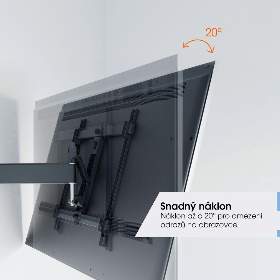 Jedným prstom môžete televízor presunúť do požadovanej polohy. Nástenný držiak TVM 3443 je vybavený funkciou One-Finger™ Movement. Vďaka špeciálnym ložiskám je pohyb nástenného držiaku veľmi plynulý a ľahký. Pre bezpečné nakláňanie a fixáciu televízora je držiak vybavený jedinečným systémom TiltAnchor™, ktorý uzamkne náklon TV vo zvislej polohe.
