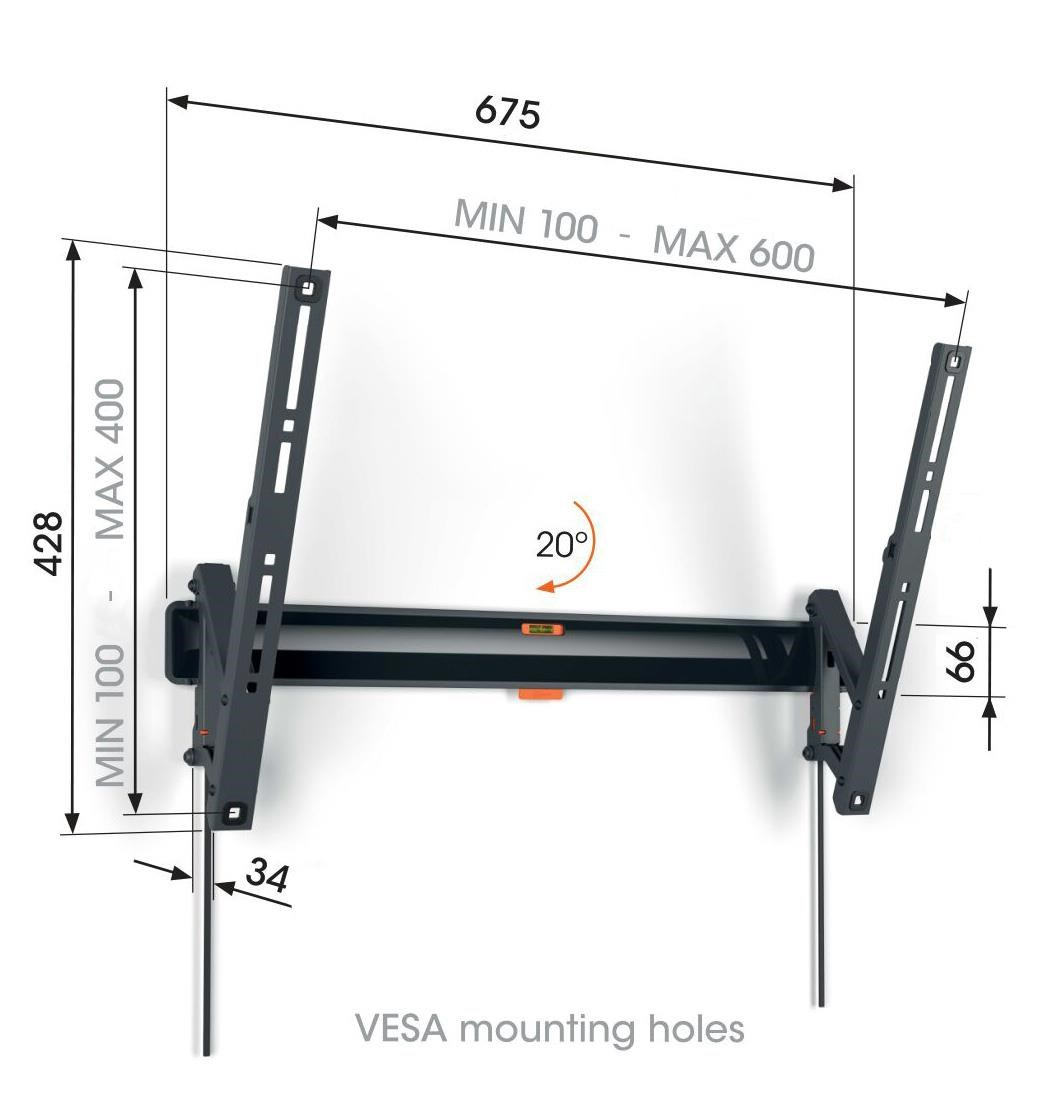 Hľadáte bezpečný a štýlový nástenný držak na televízor pre svoj veľký plochý televízor? Taký, ktorý môžete nakloniť, pretože chcete televízor upevniť na stenu o niečo vyššie, napríklad v spálni? Ak áno, tento nástenný držák rady COMFORT Tilt je ideálnou voľbou. Môžete ho nakloniť až o 20° a vytvoriť tak ideálny pozorovací uhol. Nástenný držák je vhodný pre veľké televízory s uhlopriečkou 40 až 77 palcov a hmotnosťou do 35 kg.