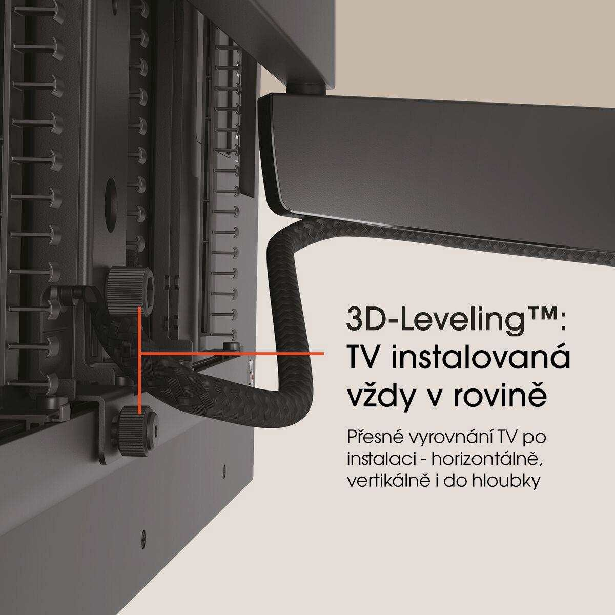 Po inštalácii nastavte televízor do dokonalého vodorovného, zvislého aj do hĺbky. Veľmi jednoducho. Aj pri montáži na nerovnú stenu nie je jeho vyrovnanie žiadny problém vďaka technológii 3D-Leveling™.