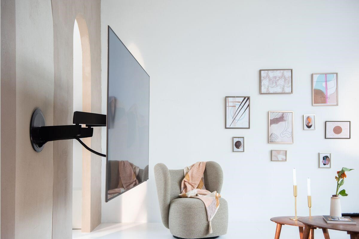 Káble pozdĺž steny určite tiež budete chcieť štýlovo schovať. To môžete dosiahnuť pomocou hliníkového káblového stĺpika TVA 7000 v bielej alebo čiernej farbe. Bez problémov ho pripojíte k nástenné doske nástenného držiaka SIGNATURE MotionMount. Je to teda ideálne riešenie.