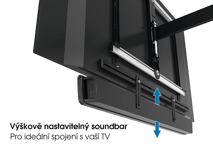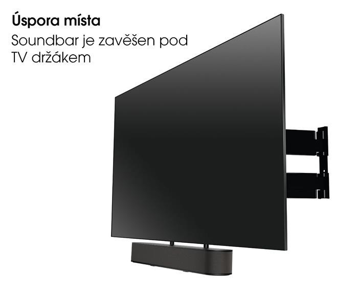 Je možné ho namontovať prakticky na akýkoľvek TV držiak. Pri nakláňaní TV sa rovnako nakláňa aj soundbar, takže vždy získate ten najlepší obraz bez zníženia kvality zvuku.