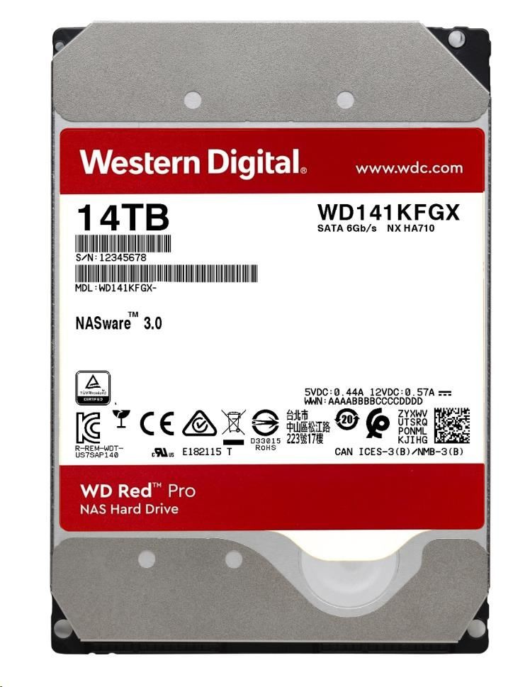 WD RED Pro NAS WD141KFGX 14 TB SATAIII/600 512 MB cache, 255 MB/s, CMR