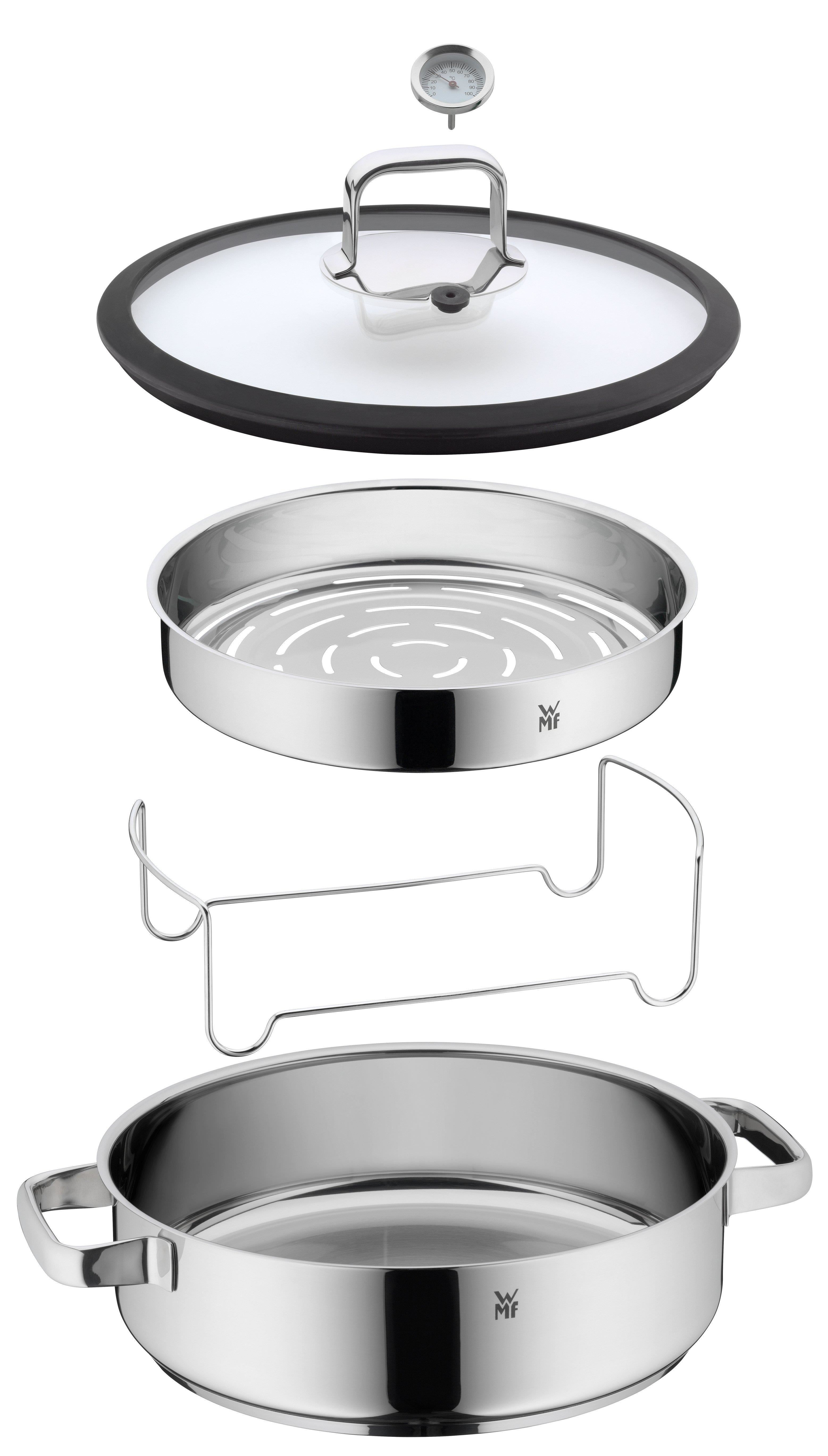 Rad WMF Vitalis zahŕňa pekáče a parné hrnce v rôznych prevedeniach. Nádobí z nerezovej ocele Cromargan® so sklenenou pokrievkou je ideálne na dusenie na varnej doske alebo na pečenie v rúre. Pre jednočlenné domácnosti vyrobilo WMF hrniec WMF Vitalis Compact, ktorý s objemom 3,5 litra je ideálny na malé porcie.