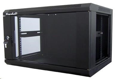 Popis XtendLan 19" nástěnný rozvaděč 6U 600x450, nosnost 60 kg, skleněné kouřové dveře, svařovaný, černý