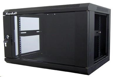 Popis XtendLan 19" nástěnný rozvaděč 6U 600x600, nosnost 60 kg, skleněné kouřové dveře, svařovaný, černý