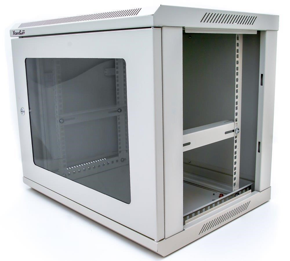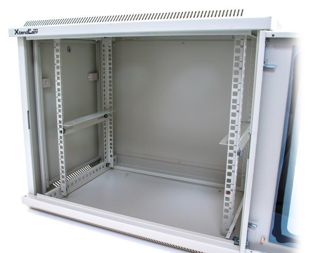 Popis XtendLan 19" nástěnný rozvaděč 9U 600x450, nosnost 60 kg, skleněné kouřové dveře, svařovaný, šedý