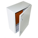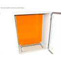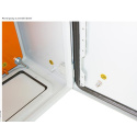 Univerzálny rozvadeč, IP66, oceľový, sivý. Trojvrstvová povrchová úprava (fosfátovanie, máčanie v základnom laku, práškový lak), výmenné dvere, pevná konštrukcia. Odnímateľný kryt kabelového priechodu.