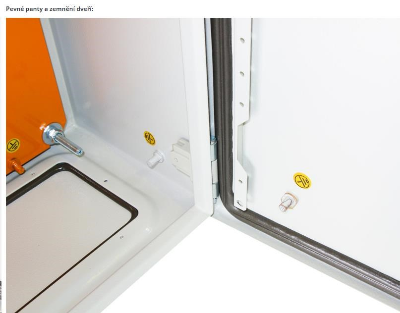 Rozvadeč je vyrobený z valcovanej ocele o hrúbke 1,5 mm. Štandardy: IEC60529, EN60529/10.91, GB4208-93 Vyhotovenie: dvere - plné, otvárateľné o 110 stupňov, montáž pravá alebo ľavá (používateľsky výmenné otváranie) základná krytina - plná bočný kryt - plný horný kryt - plný montážna doska: