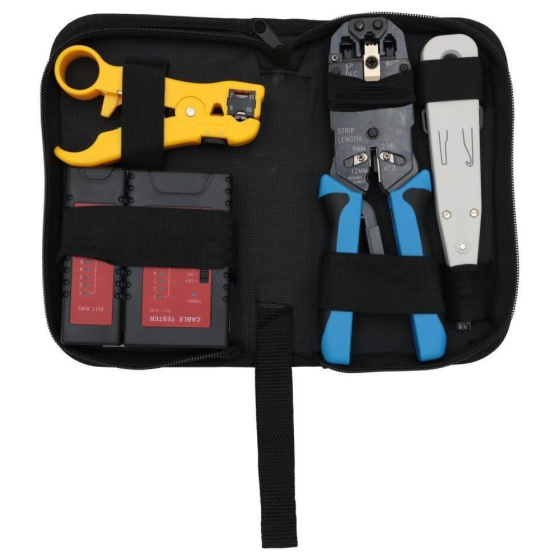 XtendLan sada nářadí v textilním pouzdře pro strukturované sítě (kleště, narážeč, stripovací nástroj, tester)