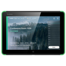 Yealink RoomPanel je profesionálne multifunkčné zariadenie na plánovanie miestnosti s 8-palcovou dotykovou obrazovkou, operačným systémom Android 9.0, plne RGB LED, duálnym mikrofónom a súpravou reproduktorov. Kompaktný panel typu všetko v jednom nielenže zobrazuje stav miestnosti v reálnom čase, ale umožňuje aj ad hoc rezervácie schôdzok alebo ďalších rezervácií zasadacích miestností, čím sa zvyšuje efektivita správy pracovného priestoru v podniku. Vďaka podpore PoE a dodávaným multi-voliteľným konzolám sa dá ľahko inštalovať na rôzne povrchy (betónová stena/sklo/drevo atď.).
