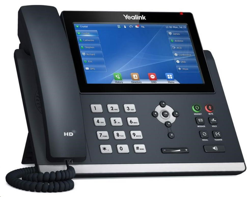Yealik T43U je vybavený 7" farebnou dotykovou obrazovkou s rozlíšením 800 x 480 pixelov. Atraktívny čistý dizajn s kovovou tyčou sa hodí do každej modernej kancelárie. Zariadenie Yealink SIP-T48U má 16 účtov SIP a dva porty 1 Gbs Ethernet s podporou PoE. Ponúka 29 programovateľných dotykových tlačidiel DSS, ktorým možno priradiť mnoho rôznych funkcií. Telefón má tiež farebnú indikáciu a farebne podsvietené tlačidlá (hlasitý odposluch, slúchadlo, stlmený mikrofón). Podporuje tiež až trojcestné skupinové konferencie a vďaka podpore EHS k nemu môžete ľahko pripojiť bezdrôtové náhlavné súpravy.