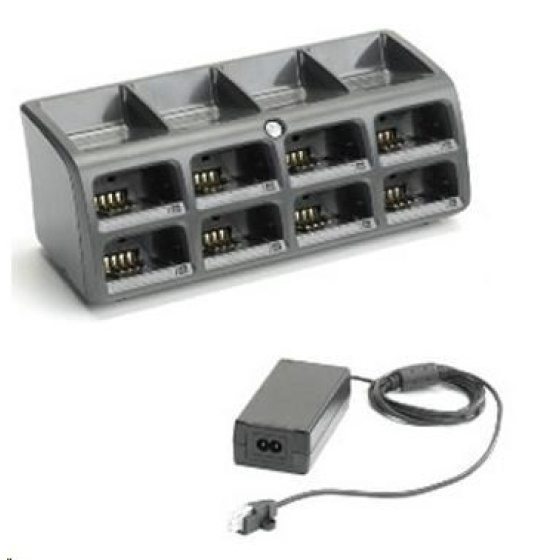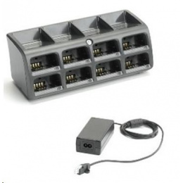 Nabíjacia stanica pre 8 batérií, pre štandardnú a vysokú kapacitu, vrátane. napájanie. Napájací kábel (kabeurosw) si prosím objednajte aj samostatne, je vhodný pre Zebra RS507..
