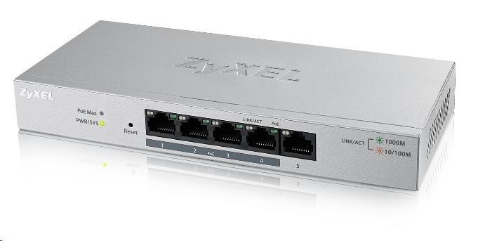 Zyxel GS1005HP 5-portový stolový gigabitový prepínač PoE, 4x PoE+ GbE, PoE 60W