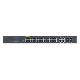 28-portový gigabitový WebManaged switch: 24x gigabitový metalický port + 4x gigabitový kombinovaný port (metal/SFP), PoE 802.3at (vysoký výkon, 30 W) - maximálne zaťaženie PoE 375 W, IPv6, 802.3az (zelená), nastavenia zabezpečenia vrstvy 2-4, L2 Multicast, pre 19" rack..